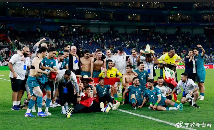 伊拉克男足为拿到了美加墨世界杯最后一张门票。